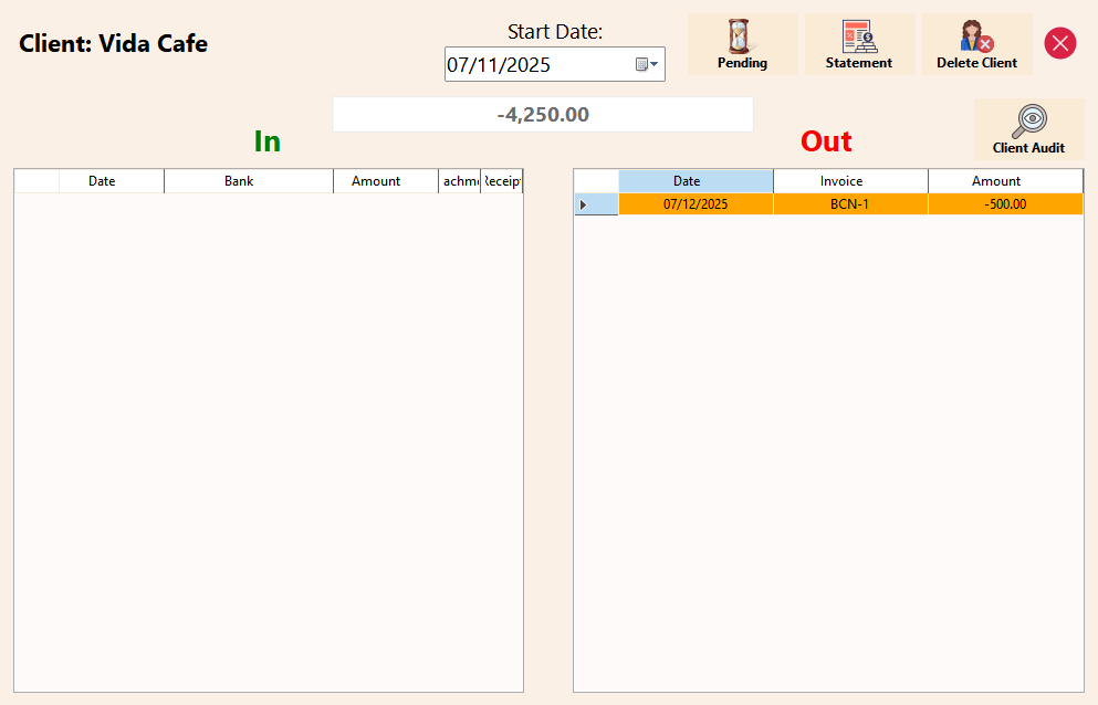 Audit Functionality: Perform a comprehensive audit to verify the accuracy of the company’s balance. The audit calculates all inflows and outflows within the company’s cash account for a thorough financial assessment.
