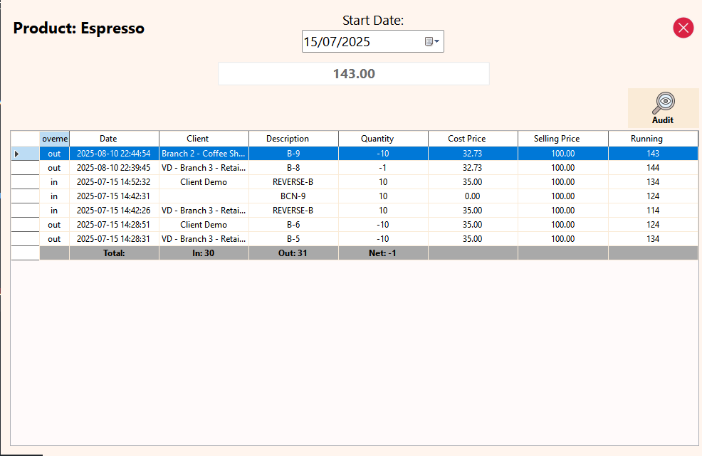 Stock Reporting: Navigate your company’s stock position effortlessly with the Stock Reporting feature. This comprehensive page provides a real-time overview of the stock position in every branch, allowing you to assess stock levels at any given date. Each branch’s stock report adheres to specific business rules (configurable in the company settings), governing sales permissions.