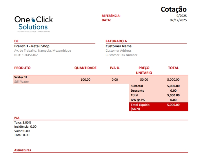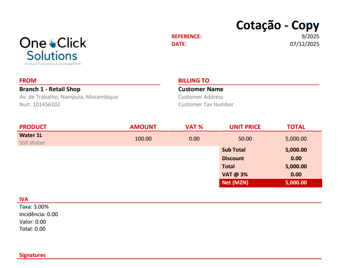 - Provides options to set Nuit/Tax Number and Address for invoices.